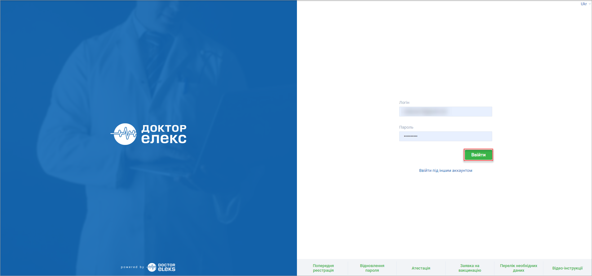 Вас зареєстровано в системі Doctor Eleks. Тепер ви можете розпочати роботу на вебпорталі Doctor Eleks і створити заявку на проходження атестації.