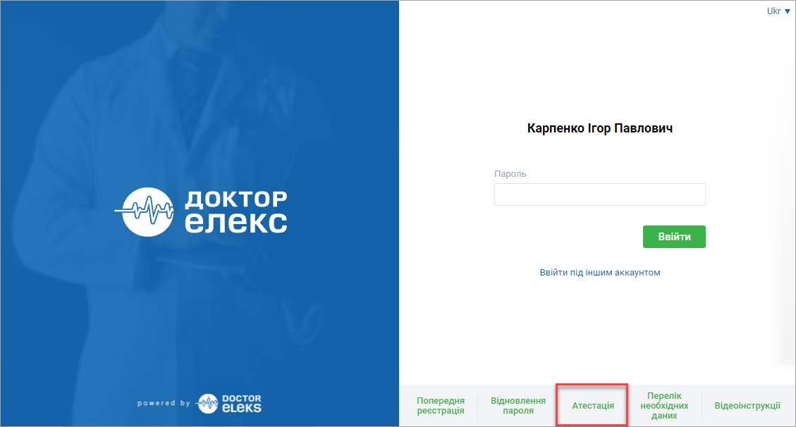 Заявку на проходження атестації можуть створити лише користувачі, зареєстровані в системі Doctor Eleks.